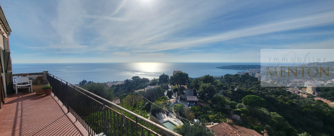 Appartement villa 3 pièces 82 m² 575 m² terrain, Menton, villa dolce,appartement Maison en pleine vue mer exceptionnelle. route des ciappes, une des plus belle vue de Menton pour cet appartement villa de 82 m² et 575 m²de terrain. Actuellement composé d 'un 2 pièces et d 'un studio , donc 3 pièces, déja réuni par une porte d 'accès interne. + 15 m² d 'annexe au rez de jardin. Sommes en exposition sud et ouest.en pleine vue panoramique, mer, montagnes, l’ensemble du bassin mentonnais sous vos yeux. Pas de charge. Sommes dans une maison divisée en 2. Les plus :Vue exceptionnelle Le calme, luminosité, pas de charge, produit introuvable sur le secteur.grande hauteur de plafond, 2,7 m. en complément du prix :2 Parkings : 2 x 22000€ Le terrain est contigu à la route des ciappes.petit accès marche pour arriver au pied du terrain principal. Accès marches , équivalent hauteur 4 étages. Présence d’un ascenseur horizontal. sommes sous fosse septique. 2 contacts directs : Agathe Meunier : 06 45 05 38 70 Philippe Perin : 06 82 88 69 94