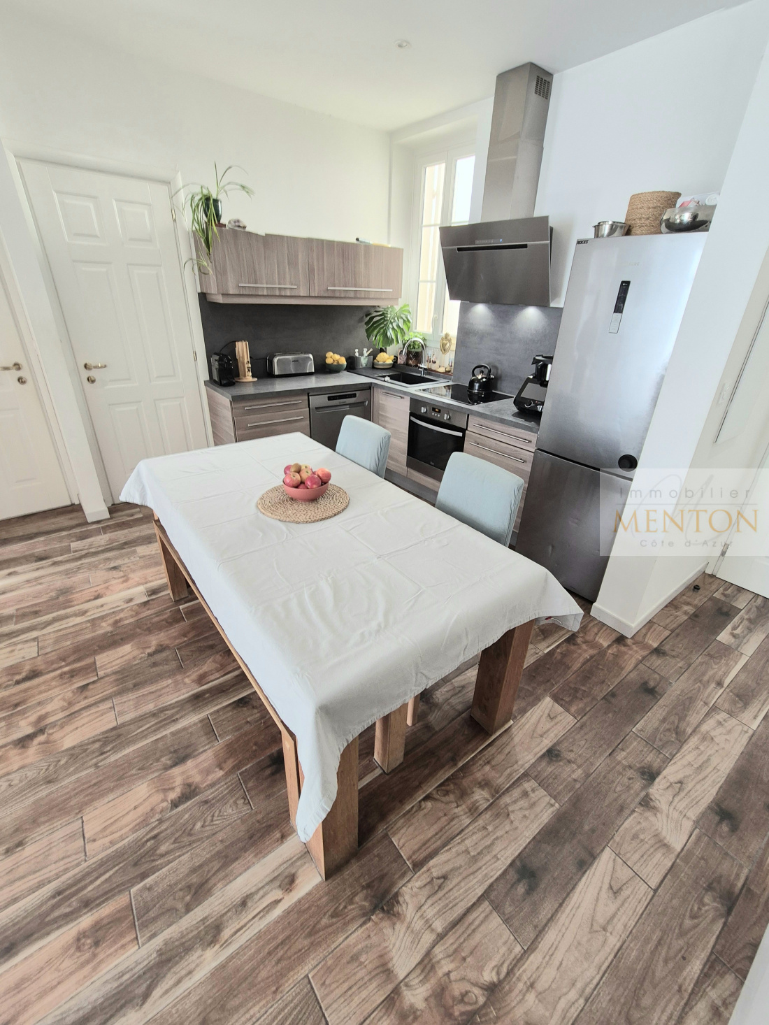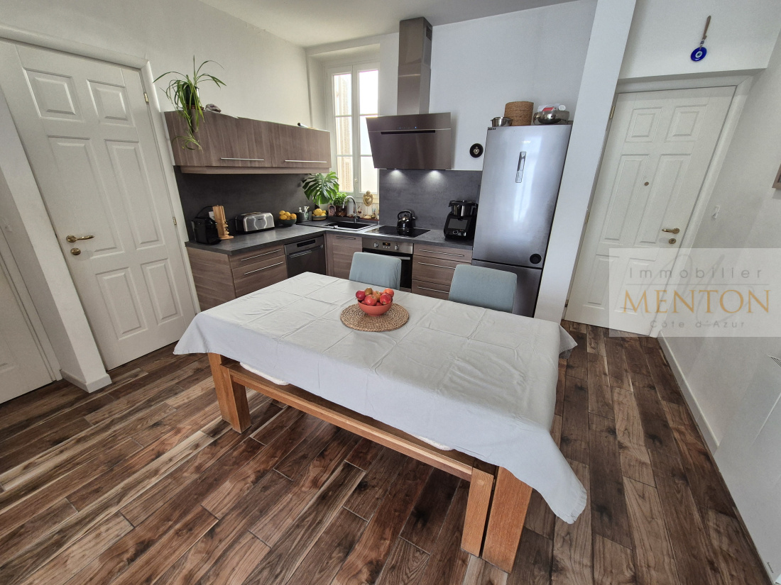 En avant première, mise sur le marché,Menton à 30 m des plages , plein centre, proche de tout, ce magnifique appartement entièrement rénové, climatisé, dans une belle et petite maison Mentonnaise de 5 appartements, terrasses sur le toit , 40 m² de terrasses balcons au total, l 'appartement est traversant, au calme, hyper lumineux. l 'appartement a été entièrement rénové, double vitrages, climatisation, Il est très rare de trouver un 4 pièces , ainsi rénové, avec toit terrasse en accès direct , à 30 m de la mer. et ce en plein coeur de Menton. l 'appartement villa se compose de 3 chambres, toutes avec terrasse pou balcon, séjour avec belle cuisine US, salle d 'eau ,wc, un escalier interne avec rangements, nous menant au toit terrasse avec cuisine d 'été et coin atelier. Bien soumis au statut de la copropriété - c. A noter : pas d 'ascenseur. Dossier solide exigé , avec garanties. Revenus de trois fois le montant du loyer 1er contact par messagerie ou mail à : philippe@immobilier-menton.net A la signature du bail le propriétaire aura la gestion en directe du bien, donc pas de frais de gestion futurs. Bail location meublé x 12 mois caution = 2 mois de loyer Notre mission est une recherche de locataire. Le tarif sera de 13 € du m² x82 m² = 1066€ incluant : visite, rédaction du bail , état des lieux d'entrée. Possibilité location de garage dans la même copropriété:140€ mois votre contact direct:, philippe Perin 06 82 88 69 94