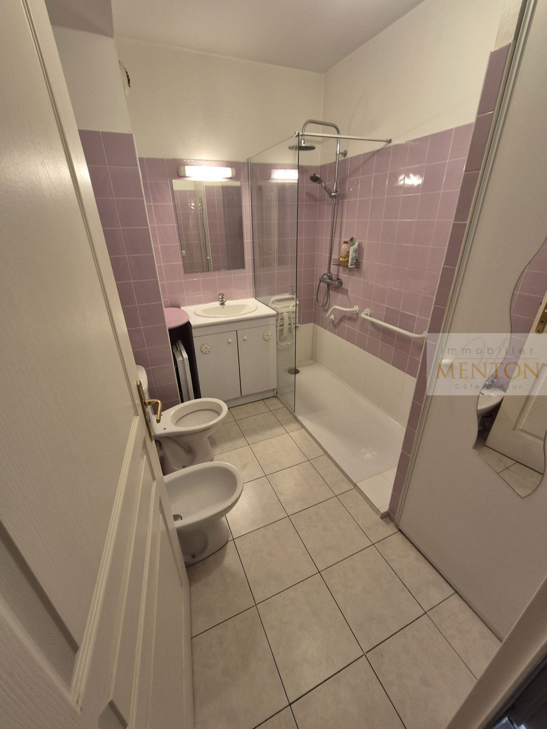 Menton, début route de Gorbio,proche de carnoles, Roquebrune cap Marin, dans un bel immeuble récent, 2002, ce beau 2 pièces bénéficiant d 'une terrasse de 13m². séjour cuisine de 21 m². L 'appartement est climatisé, exposition ouest, l 'immeuble domine l 'axe de la vallée. sommes proche de la piscine de roquebrune cap artin, front de mer, du parc de la madone à Menton. La route de gorbio est la première vallée sur Menton en venant de monaco. Nous bénéficions d'une belle résidence de standing à 800 mêtres du bord de mer. une ccave complète ce bien. beau 2 pièce, terrasse 13m², exposition ouest la cave est au 2ème étage. charges128€ par mois.