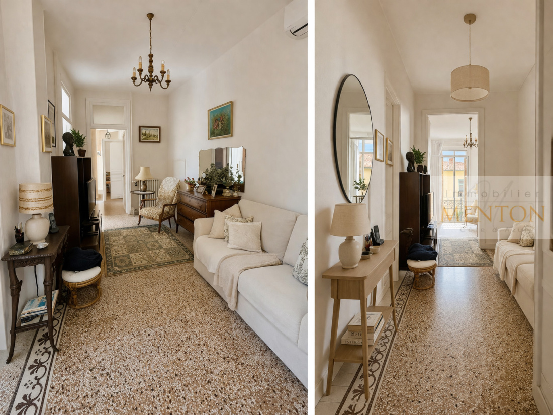 Menton, proche du centre ville, au coeur d'une bâtisse de caractère, venez découvir de spacieux 3 pièces, d'une surface de 78,77 m2 , offrant un fort potentiel de valorisation. Il est situé au 1er étage ( accès par escalier, cet appartement vous séduira par sa belle luminosité, ses volumes généreux ( hauteur sous plafond : 3,50 m) et son cachet authentique il est composé : d'une vaste entrée, salon, deux chambres, cuisine séparée, salle de bain, wc invité, buanderie. Vous apprécierez le charme de l'ancien, ( hauteur sous plafond, ainsi que la situation recherchée à proximité des commodités et du centre ville.) Travaux de rénovation à prévoir permettant de repenser entièrement les espaces et de créer un intérieur à votre image. Cimatisation dans l'appartement, la toiture est révisée, double vitrage dans les pièces principales, petite copropriété composée de 7 logements, ( syndic bénévole) A noter : Accès par escalier ( équivalent à un étage en descendant), absence de balcon. Ce bien est idéal pour des investisseurs, ou jeune couple souhaitant réaliser un projet sur mesure dans un cadre plein de caractère. Ce bien est vendu avec une cave : 7 m2 Les points forts : Le calme, la luminosité, les beaux volumes . contact direct : Caroline Rieunier 06 24 43 50 85